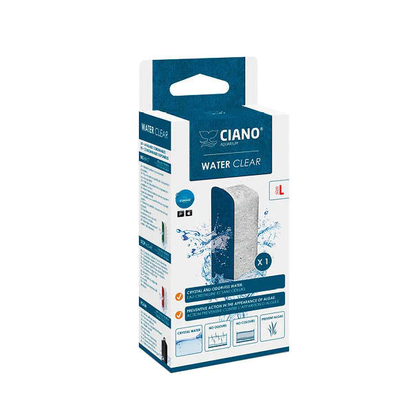 Ciano Water Clear & Protection cartridge is a replacement chemical adsorbing media to fit filters in Ciano aquariums. It removes substances that are harmful to your fish and keeps the water crystal clear and odourless. It also helps prevent the growth of algae.