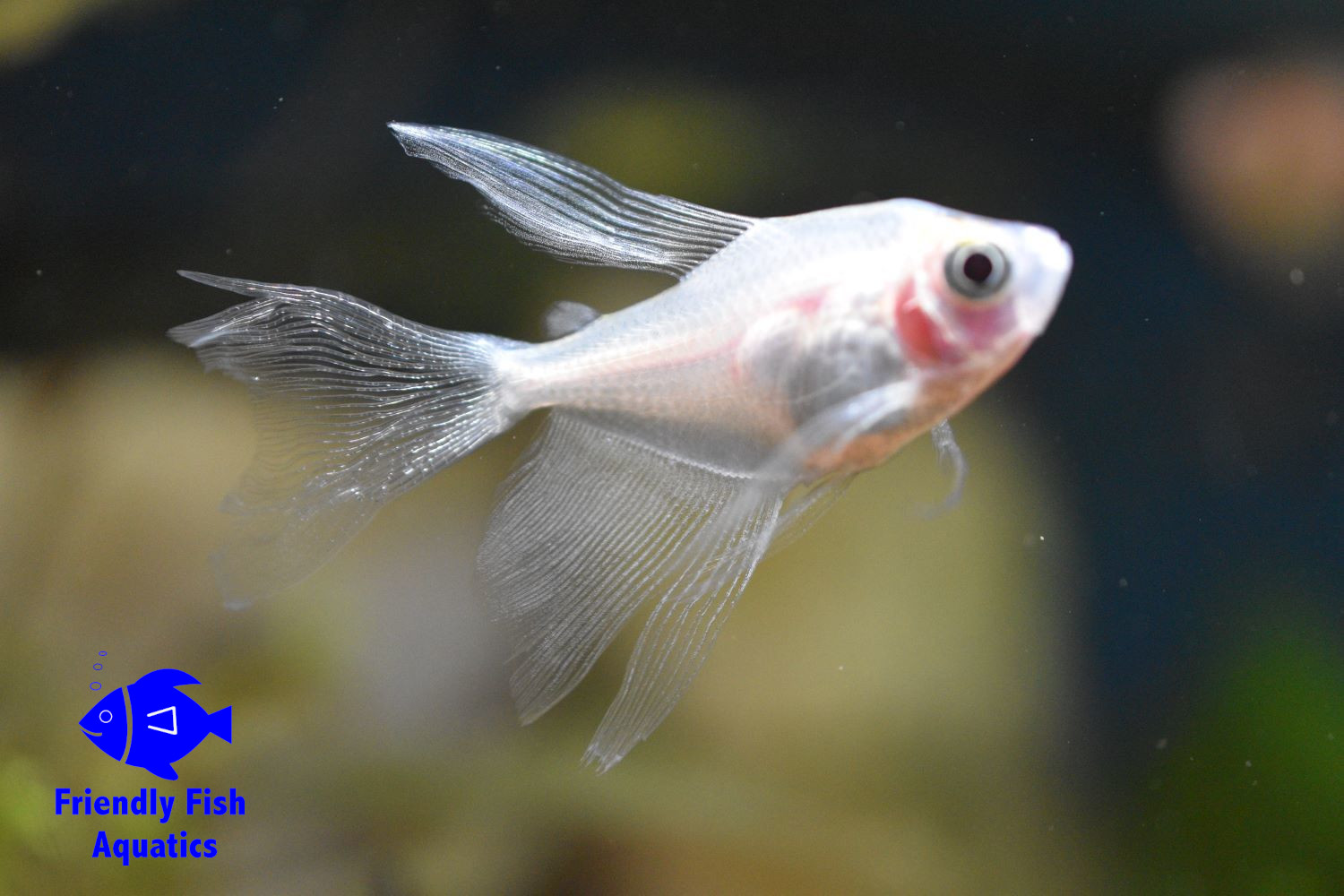 Fun Fact: The long fins of the Long Finned White Widow Tetra are a result of selective breeding, focusing on enhancing their ornamental value. These elegant fins make them a popular choice among aquarium enthusiasts.