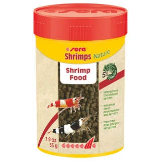 Sera Shrimps Nature is a staple, granular shrimp food made with ingredients including spirulina and alder cones. This provides everything the shrimps require including healthy growth and safe moulting.