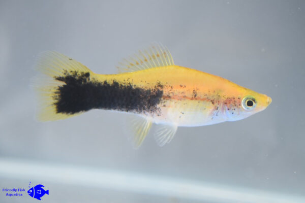 How do you tell the difference between Male and female? Male Yellow Swordtails are typically larger in size and have a distinct elongated caudal fin, often referred to as a “sword.” Females have a rounder body shape and a shorter, fan-shaped caudal fin. Additionally, males may display more vibrant colours and have a gonopodium, a modified anal fin used for reproduction.